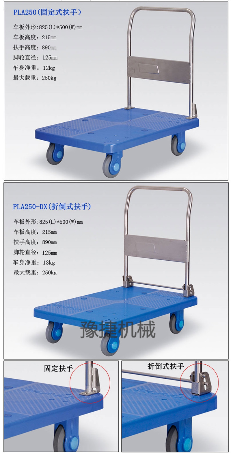 【华体会买球-华体会买球(中国)官网 】平板手推车由塑料车板、粉体涂装扶手(可折倒、固定)、静脚轮(尼龙支架、铁板支架)等组成。