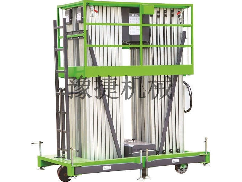 桅铝合金升降平台:采用优质高强度铝合金材料,具有造型美观、体积小、重量轻、升降平稳、安全可靠等优点。广泛用于工厂、宾馆、餐厅、车站、影剧院、展览馆等场所,是保养机具、油漆装修、调换灯具、电器、清洁保养等用途的理想安全伴侣。